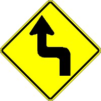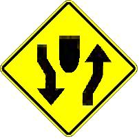 (2-) What is the meaning of this sign? A: You have a sharp turn to the left then to the right ahead. |