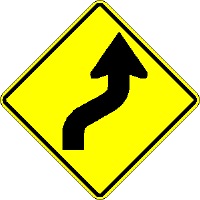 (8-)What does this sign mean? A: You are approaching a curve to the right then to the left ahead. |