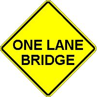 (4-)What is the meaning of this sign? A: The vehicle closest to the bridge has the right of way ahead. |