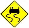 (2-)What is the meaning of this sign? A: Slippery road when wet ahead. |