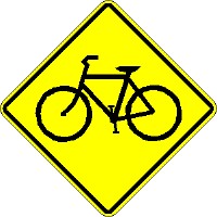 (2-)What is the meaning of this sign? A: Caution. Bicycle crossing ahead. |