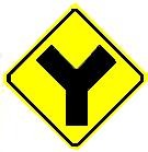 (3-)What is the meaning of this sign? A: The road branches to the right and left ahead. |