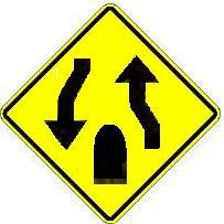 (1-)What is the meaning of this sign? A:Divided highway ends.Two lane highway begins |