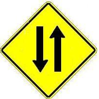 (3-)What is the meaning of this sign? A: Traffic will be in both directions. |